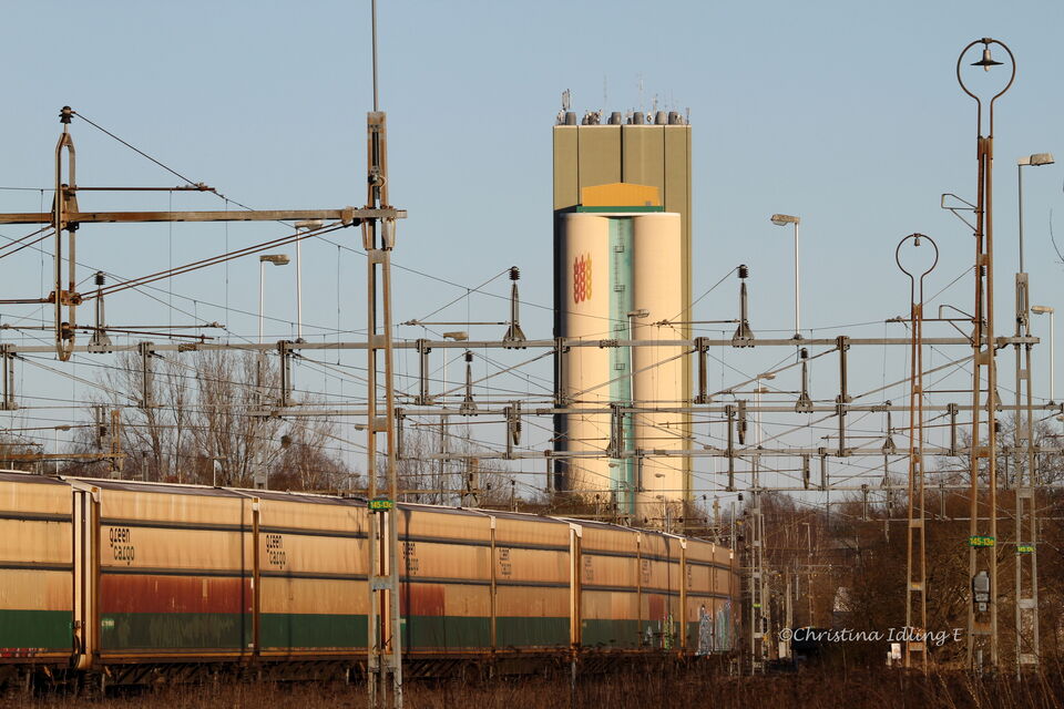Järnvägen på ena sidan och industri på den andra sidan.